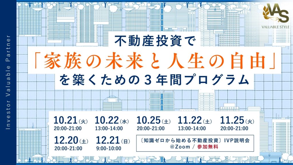 私たちVASの不動産投資では、IVP(インベスターバリュアブルパートナー)という育成型の不動産投資コンサルティングを通じて、お客様の資産形成を確かなものにし、安心できる未来を創るプログラムを展開しています。